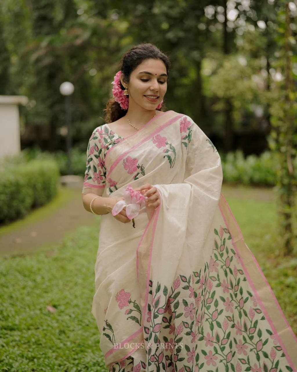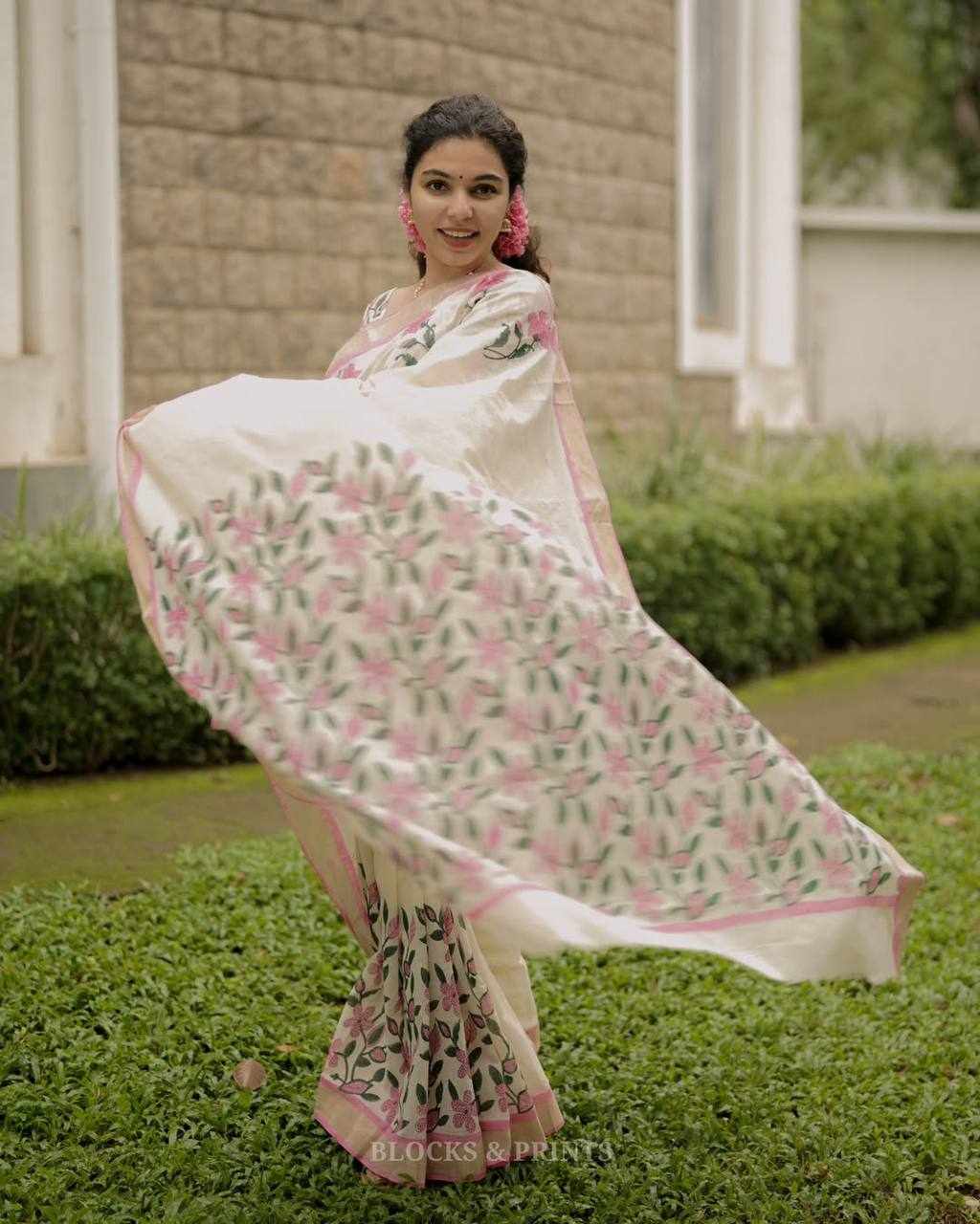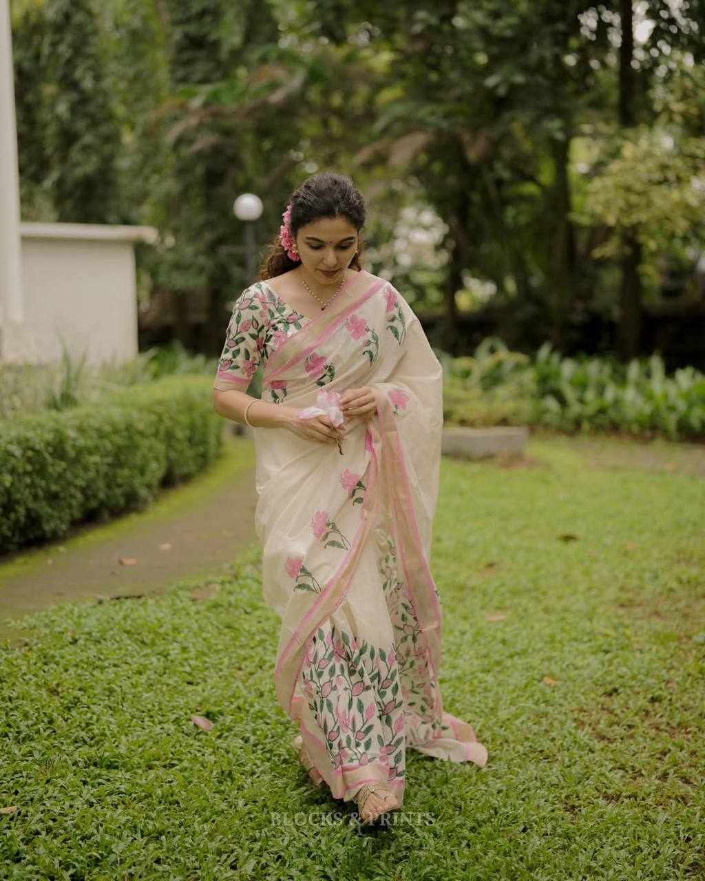 Saree Fabric: Premium Linen Cotton with beautiful digital print