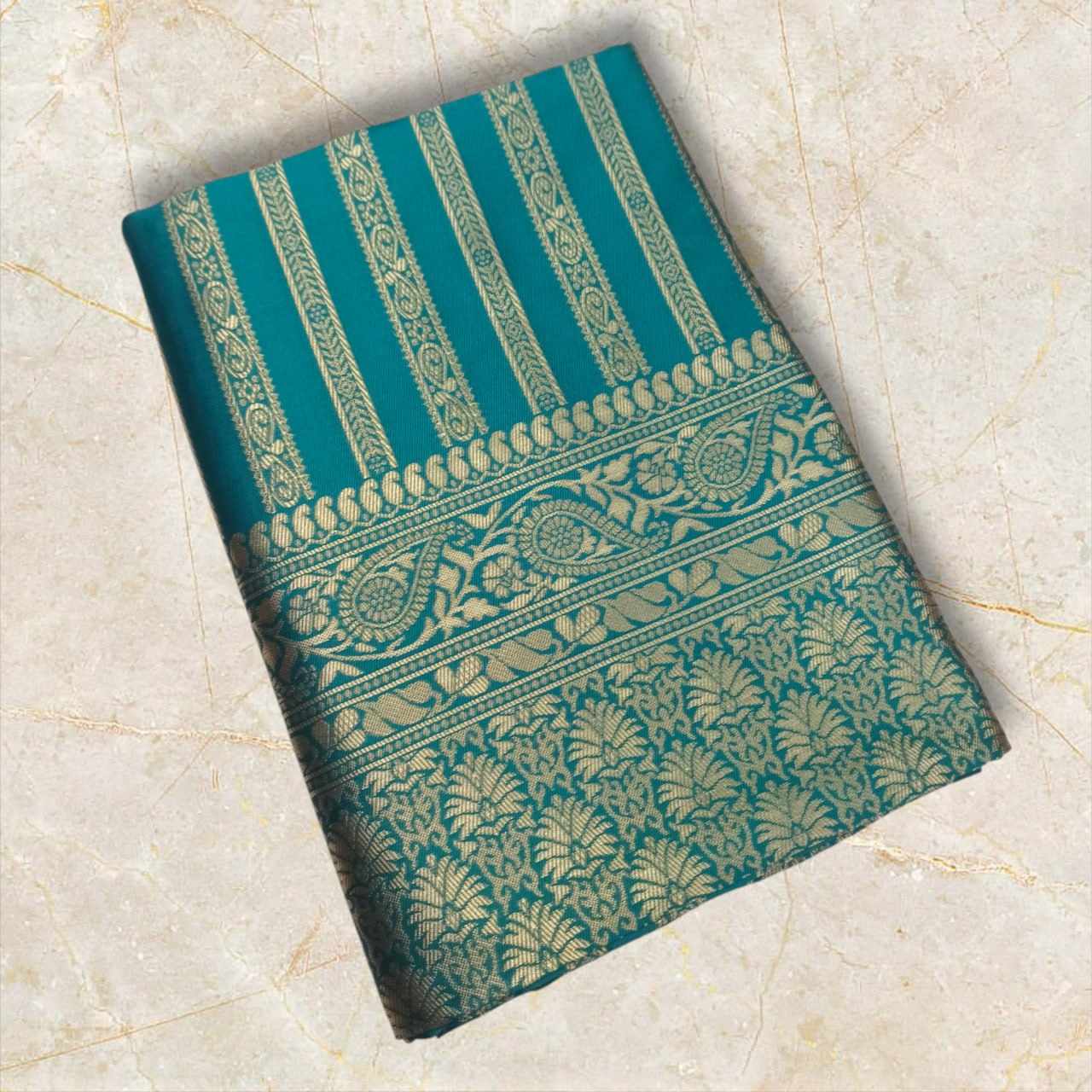 Name : | MF 1920 PETROL BLUE BANARASI SOFT LICHI SILK SAREE |