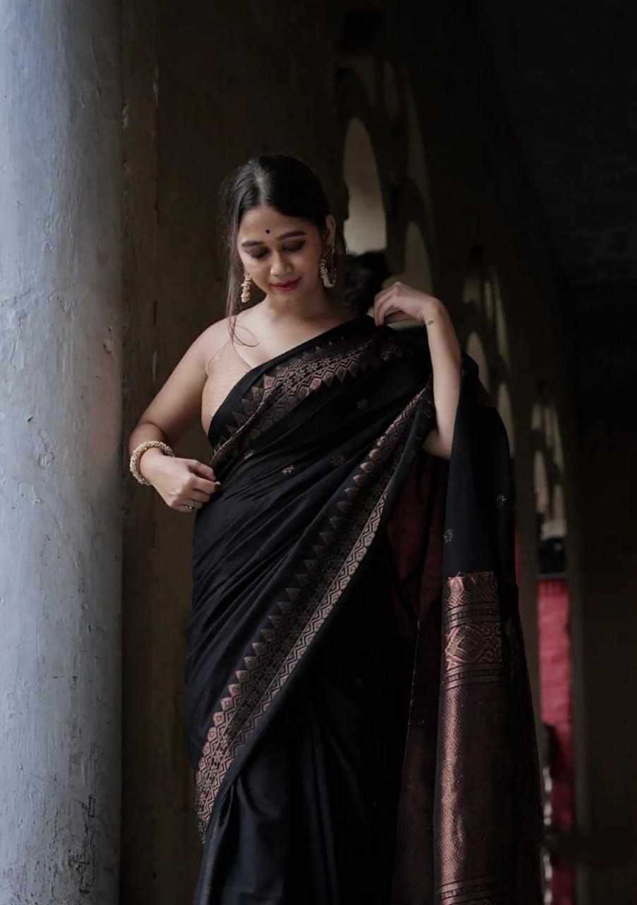 Name : | MF 1950 BLACK BANARASI SOFT LICHI SILK SAREE |