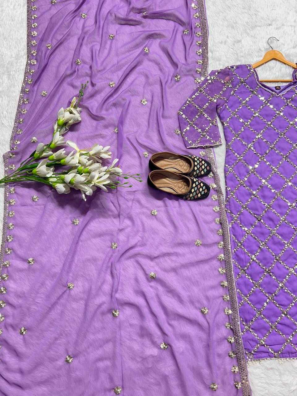 MF 409 New Fancy Embroidered Purple Dress