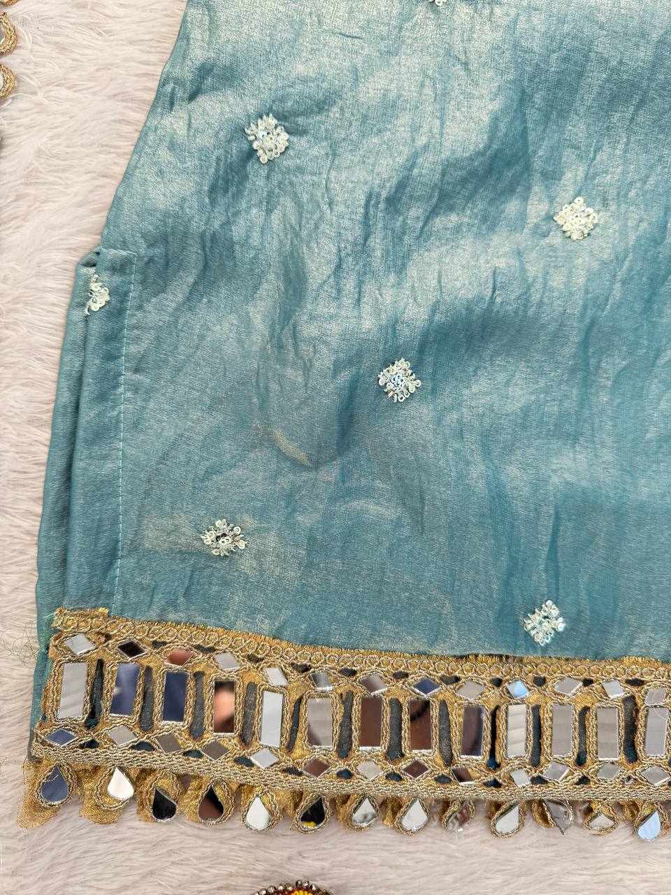 Add a graceful sparkle to your festive collection with this elegant Fendy Silk Kurti Plazo Set, beautifully designed with thread, sequence, and real mirror work. Perfect for festivals, family functions, parties, and special occasions.