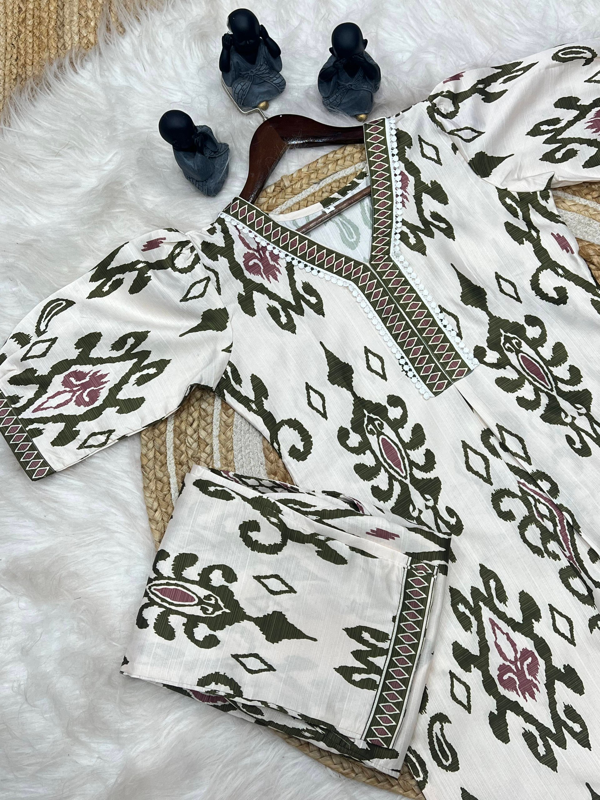 JKWH 999 Pure Fine Cotton Febric Embroidery Work A-line Kurti Set With Pocket